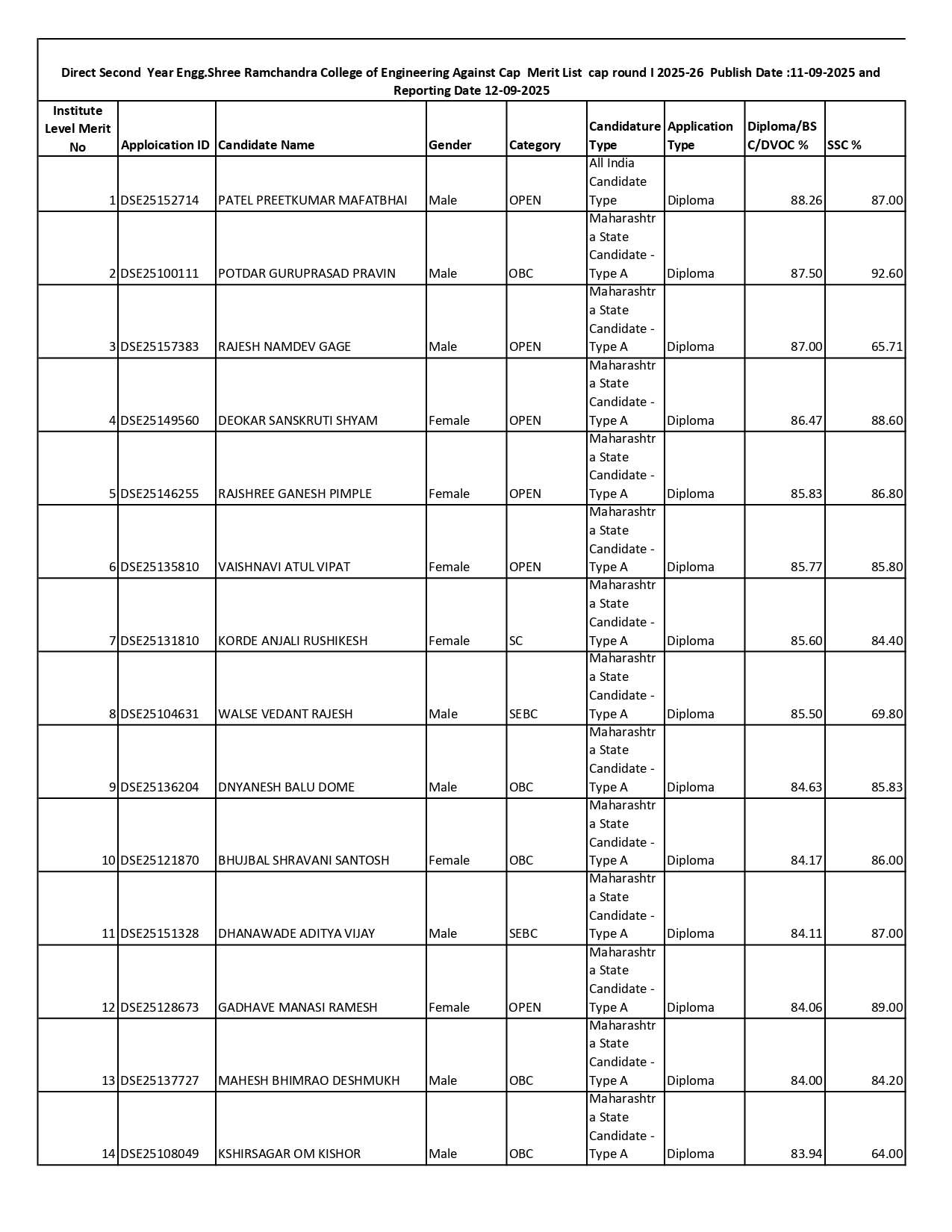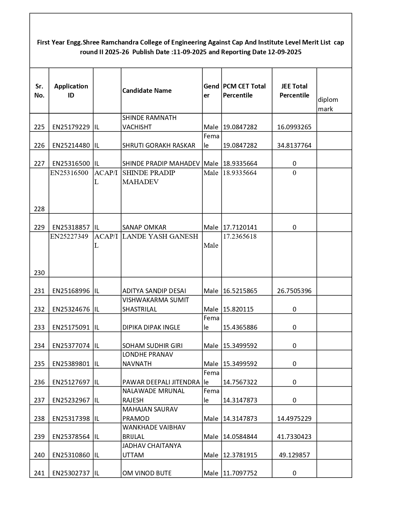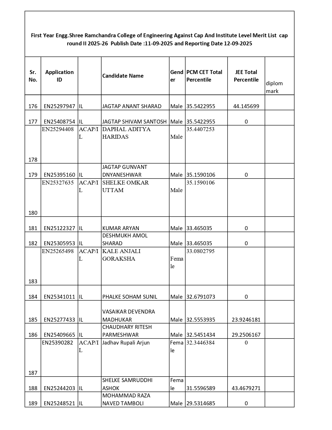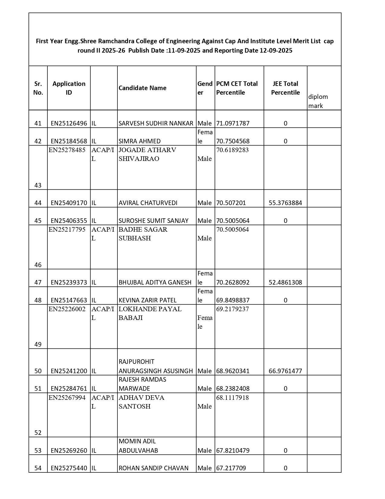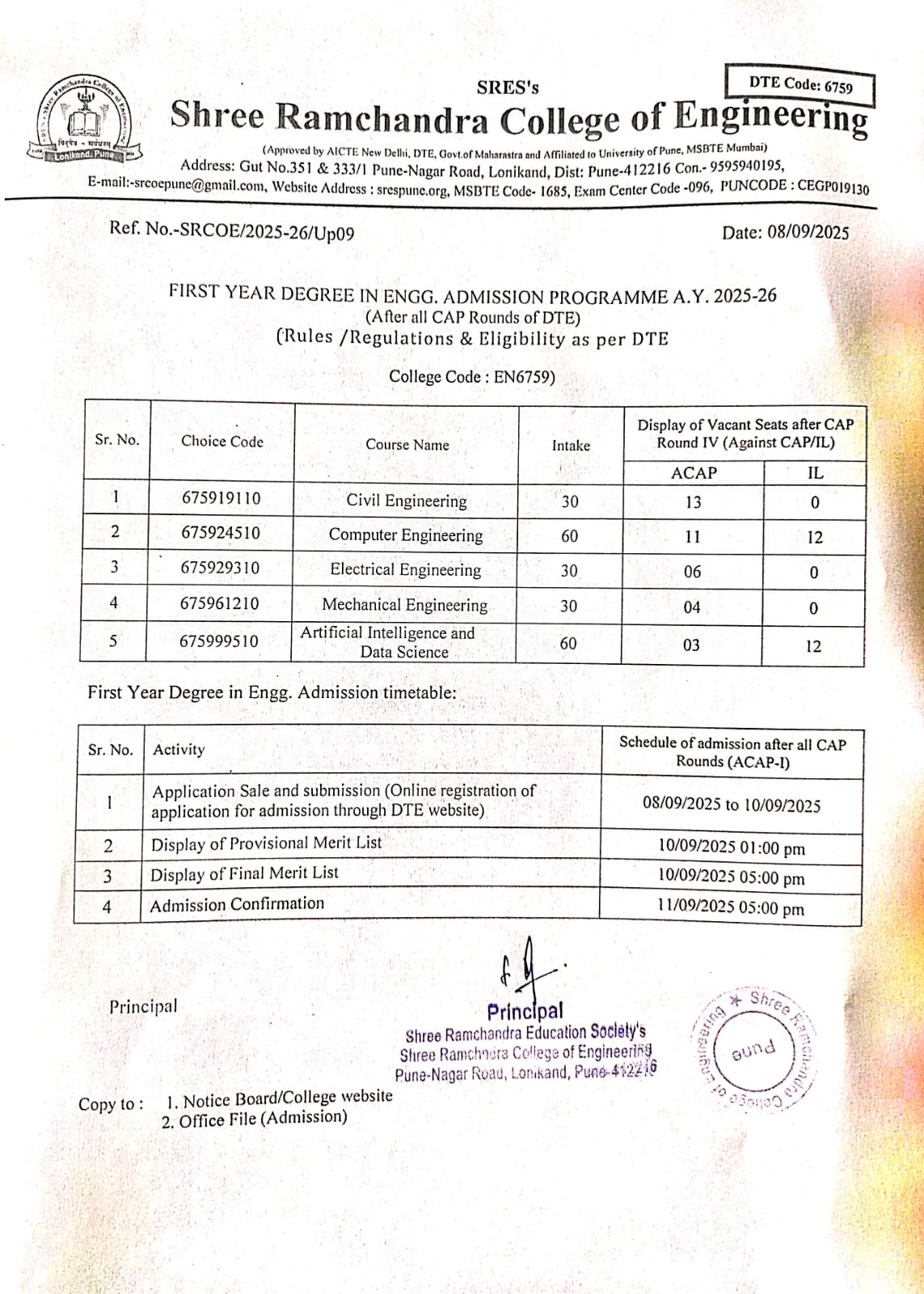 First Year Diploma/Direct Second Year Diploma/First year Engineering/Direct Second Year Engineering and ME