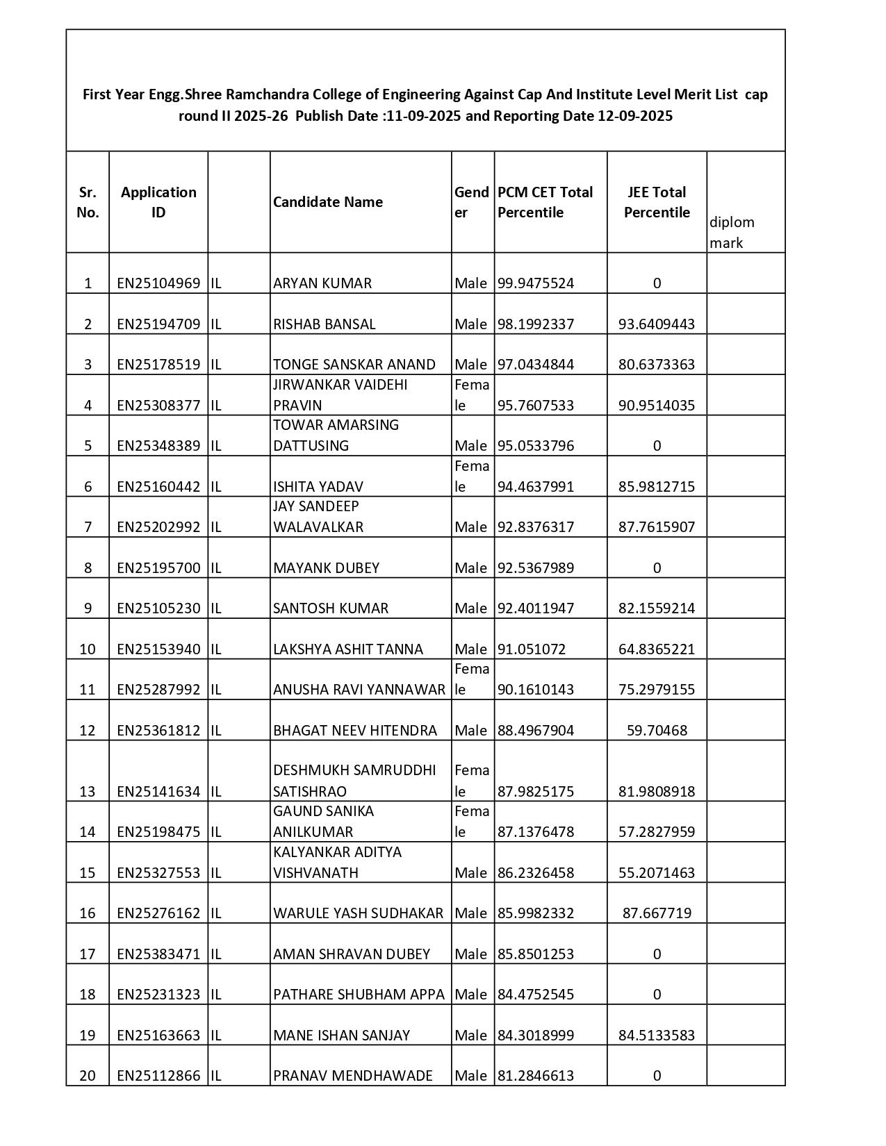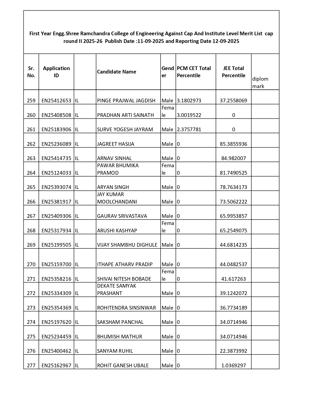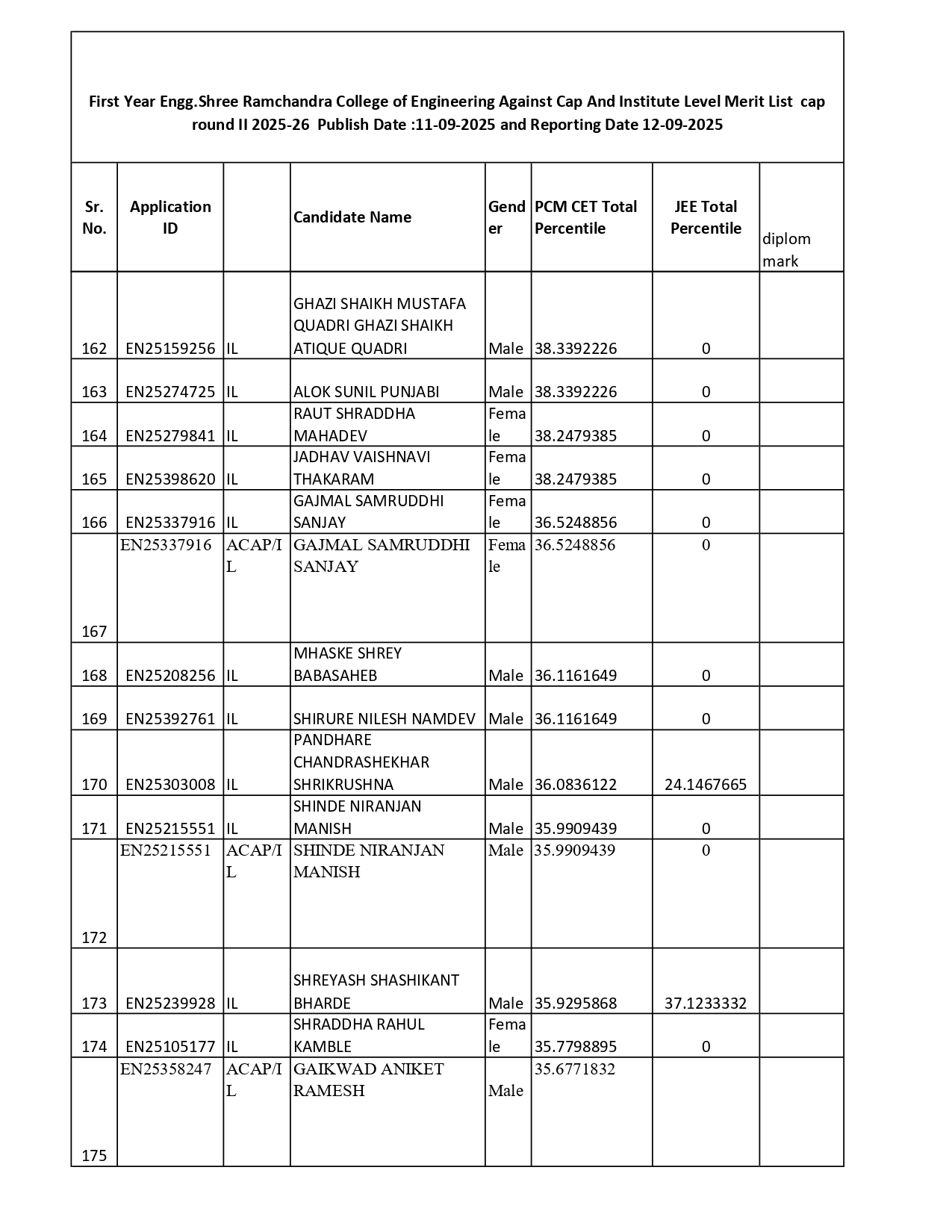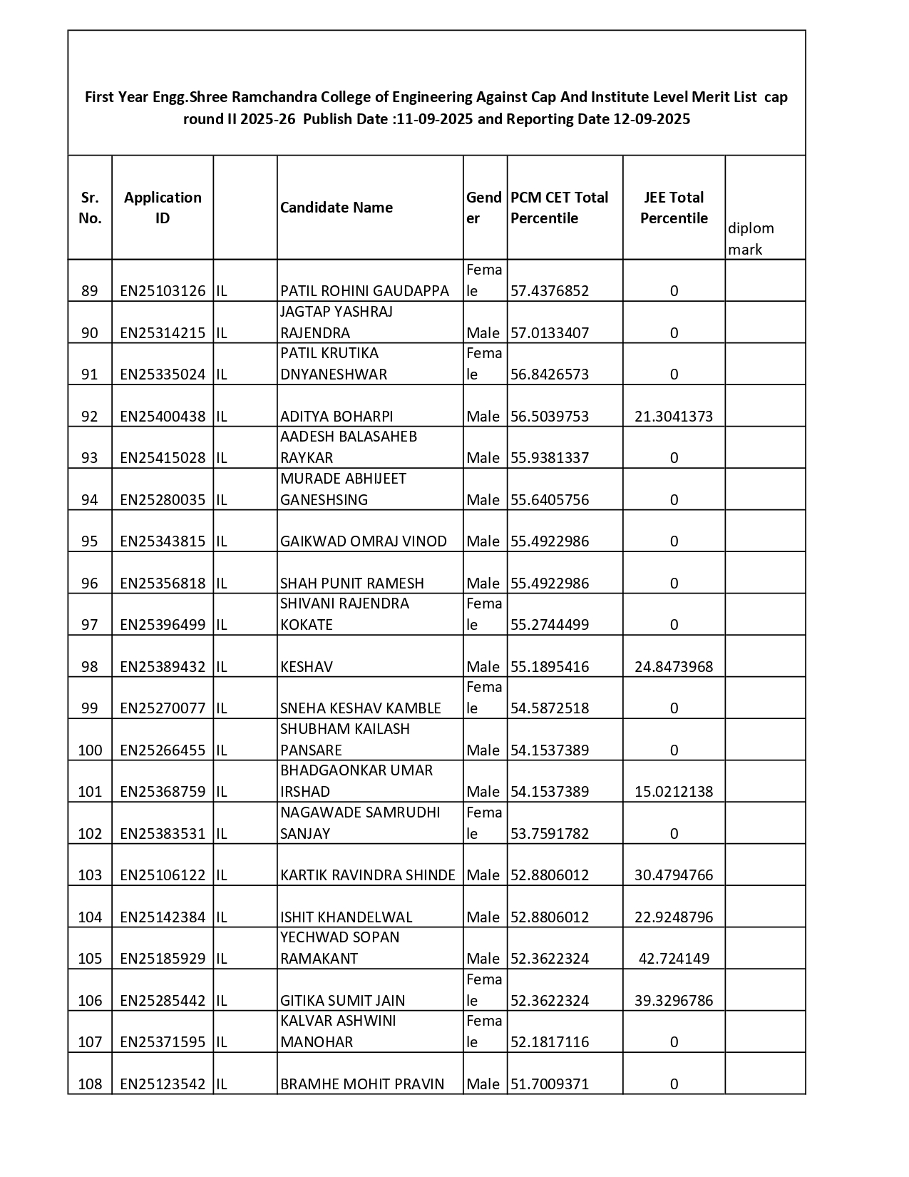 First Year Diploma/Direct Second Year Diploma/First year Engineering/Direct Second Year Engineering and ME