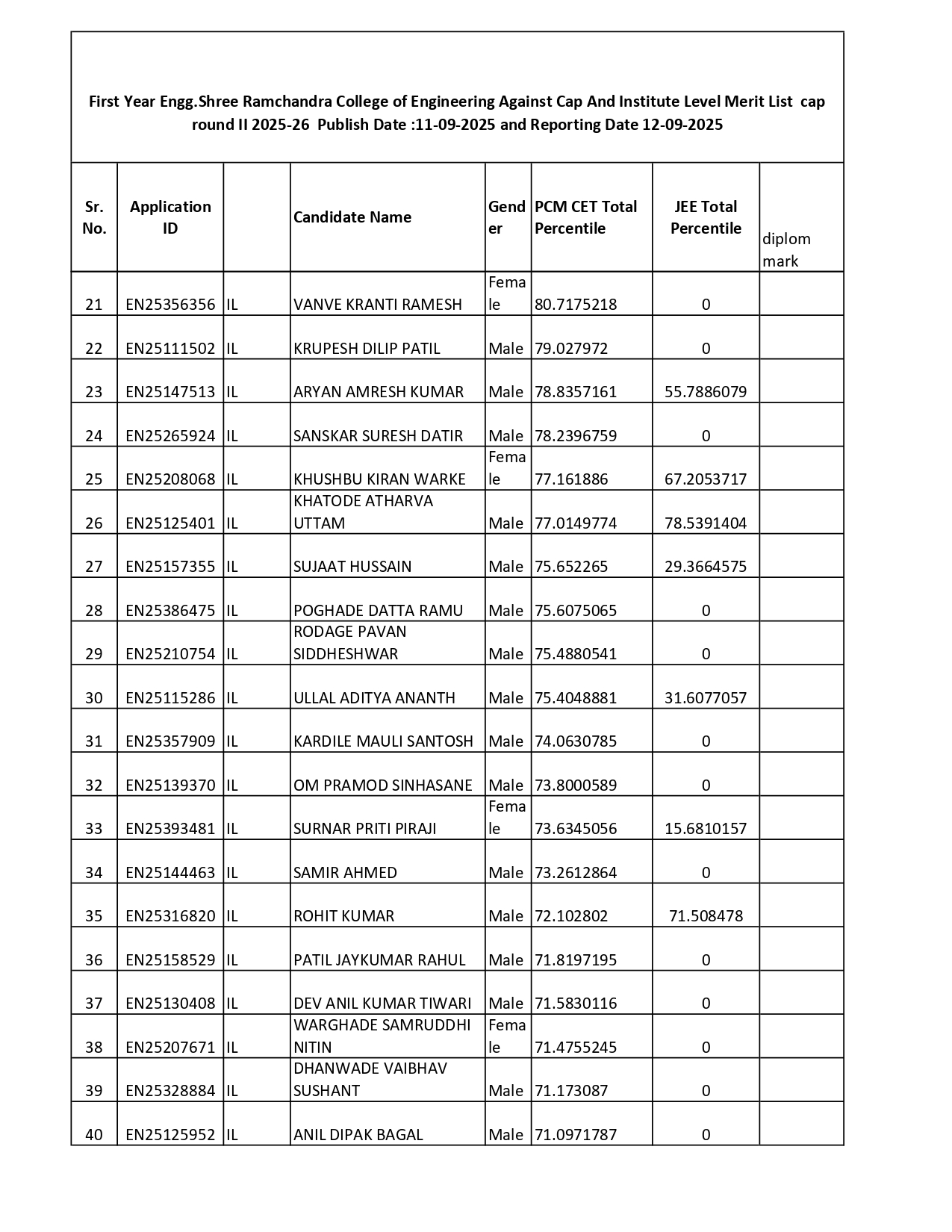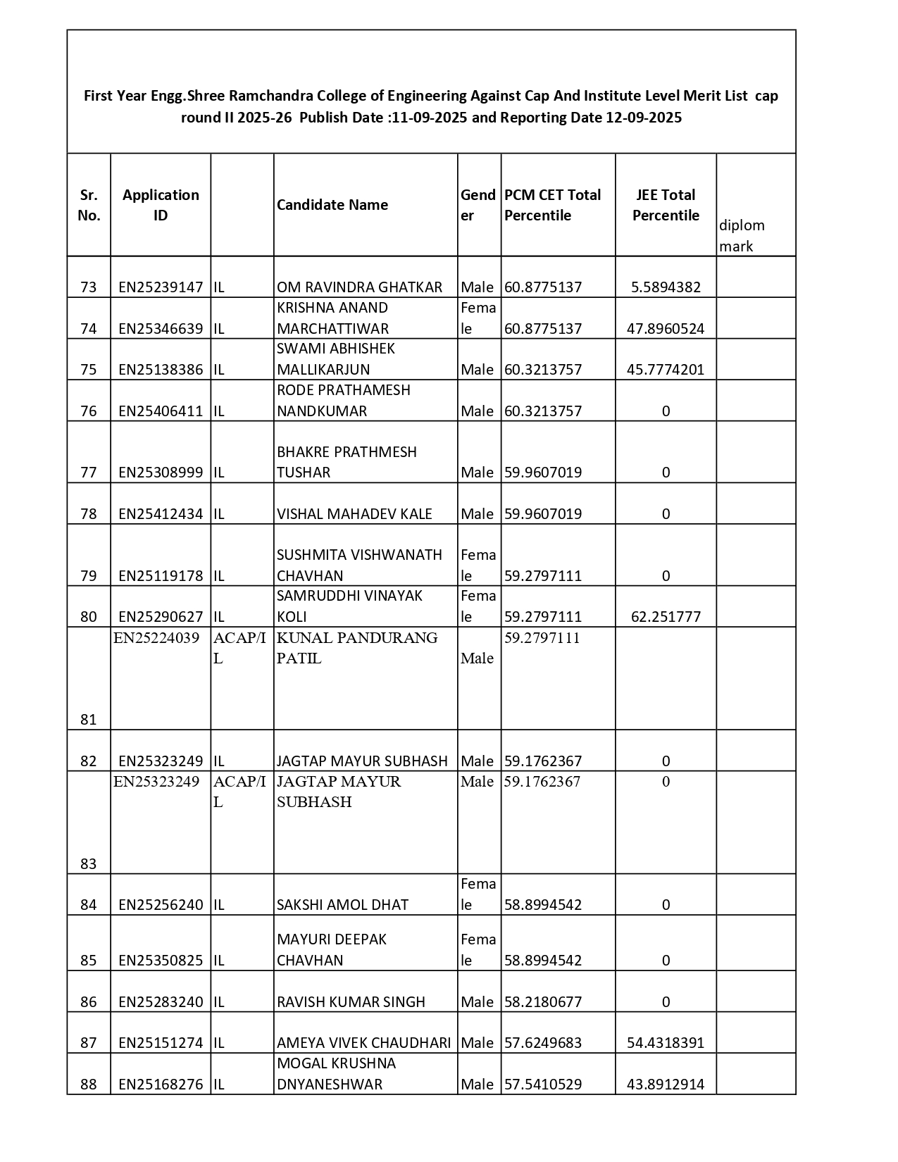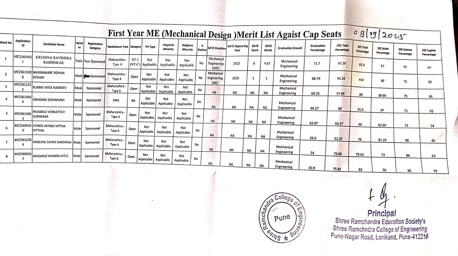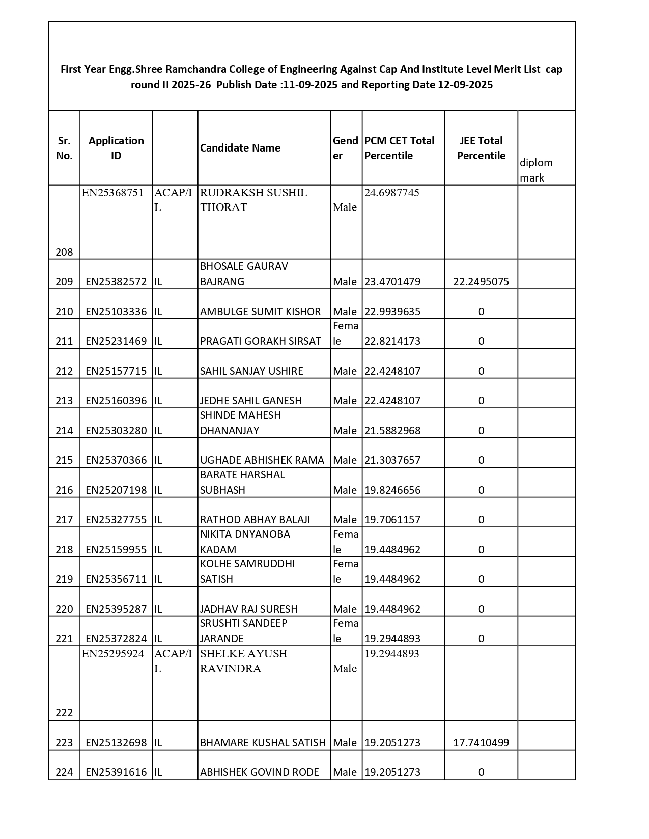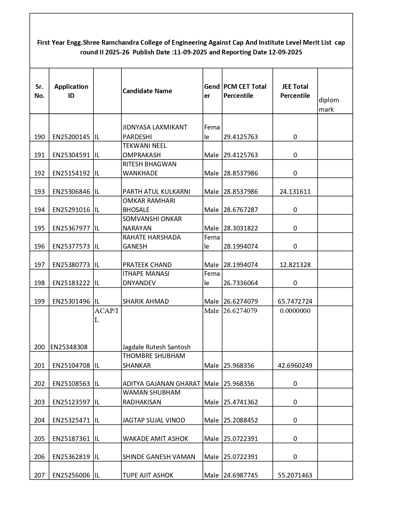 First Year Diploma/Direct Second Year Diploma/First year Engineering/Direct Second Year Engineering and ME