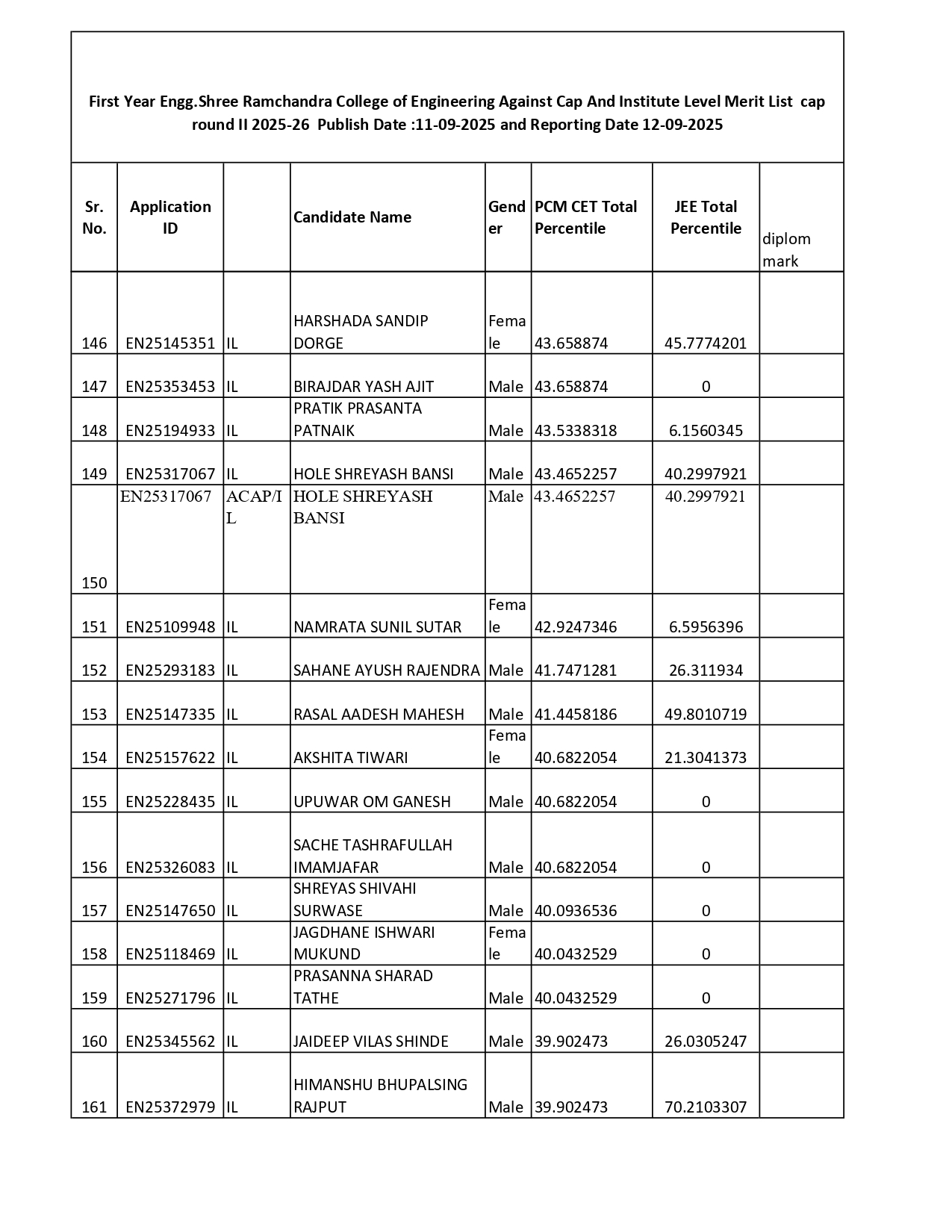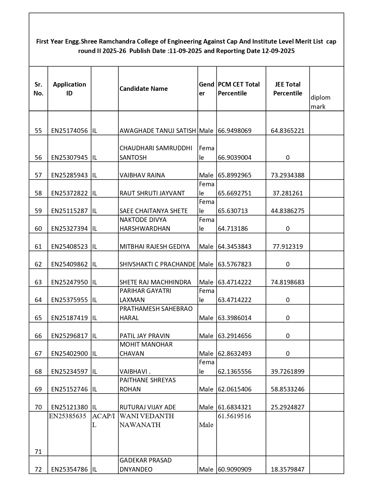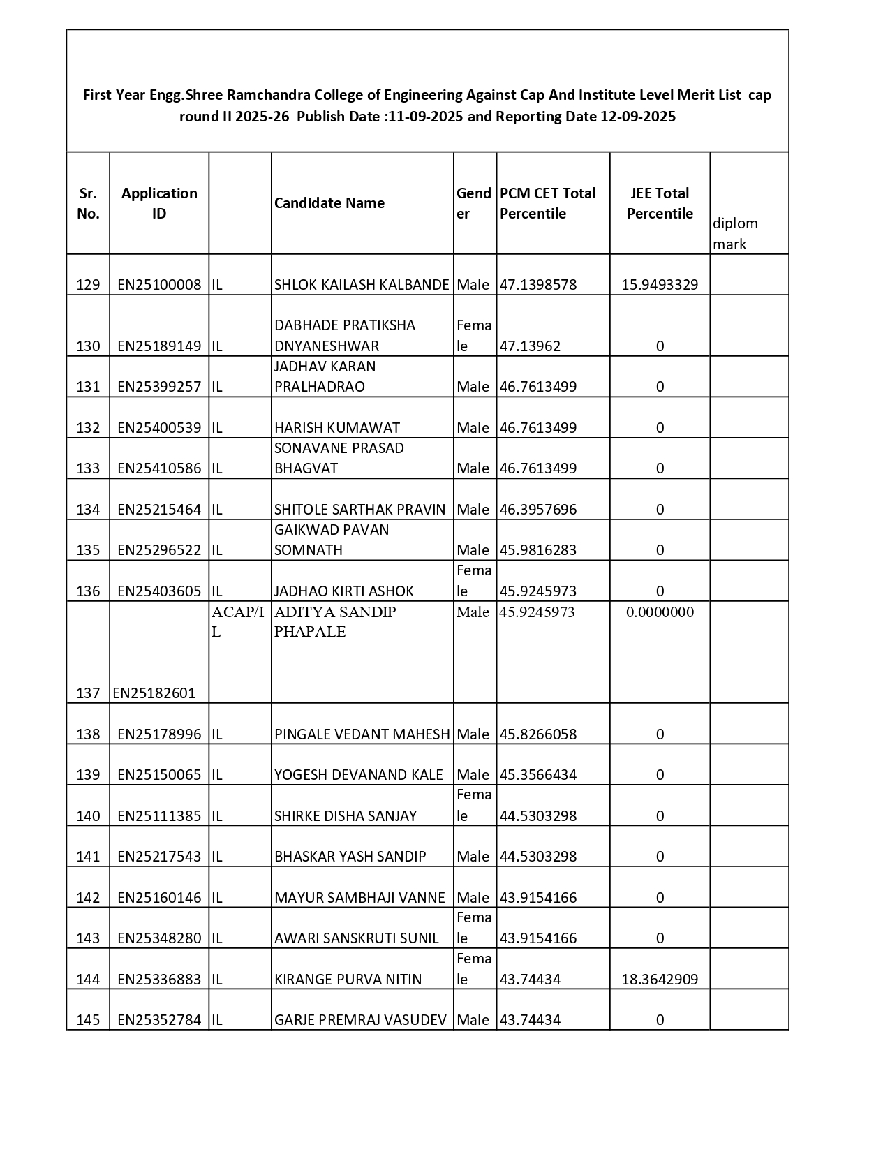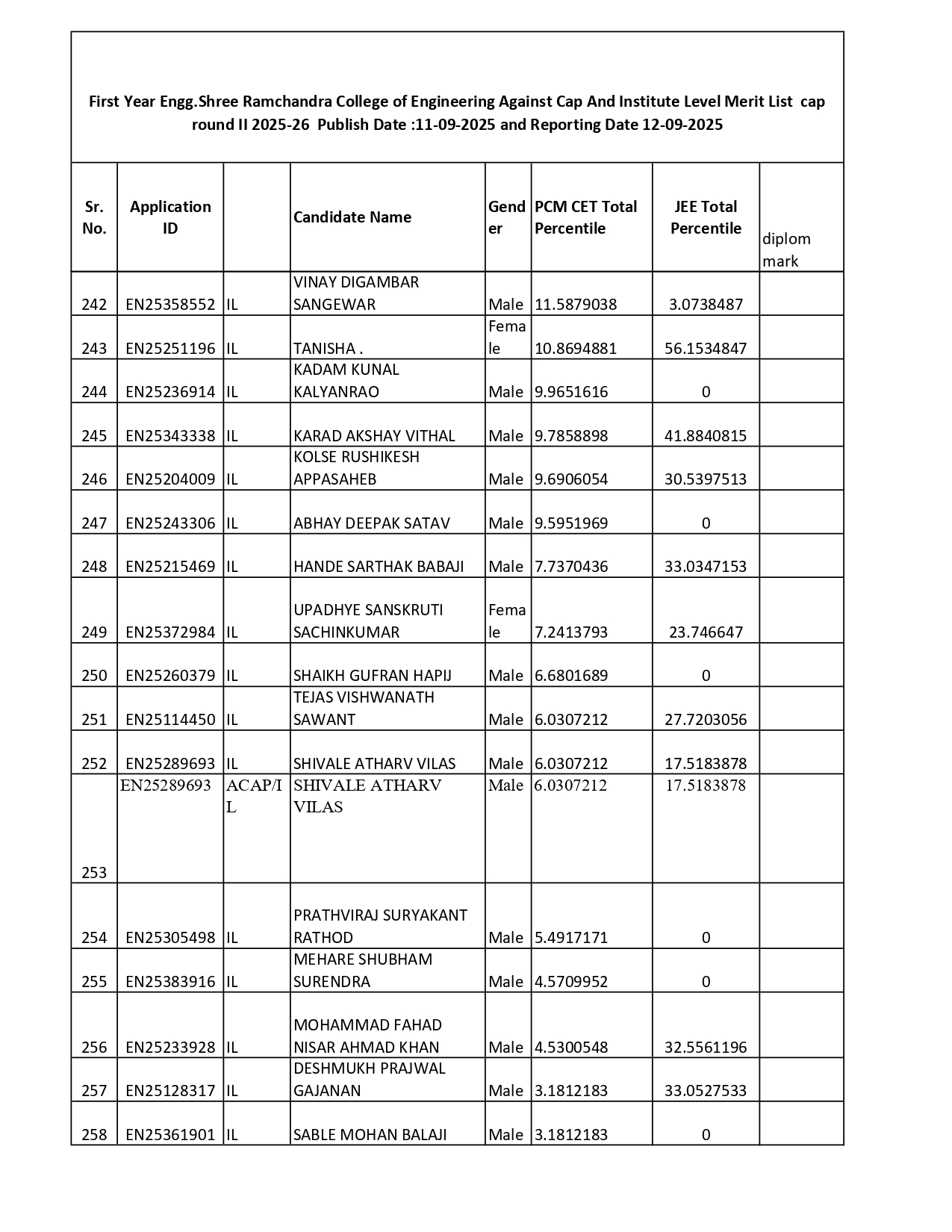 First Year Diploma/Direct Second Year Diploma/First year Engineering/Direct Second Year Engineering and ME