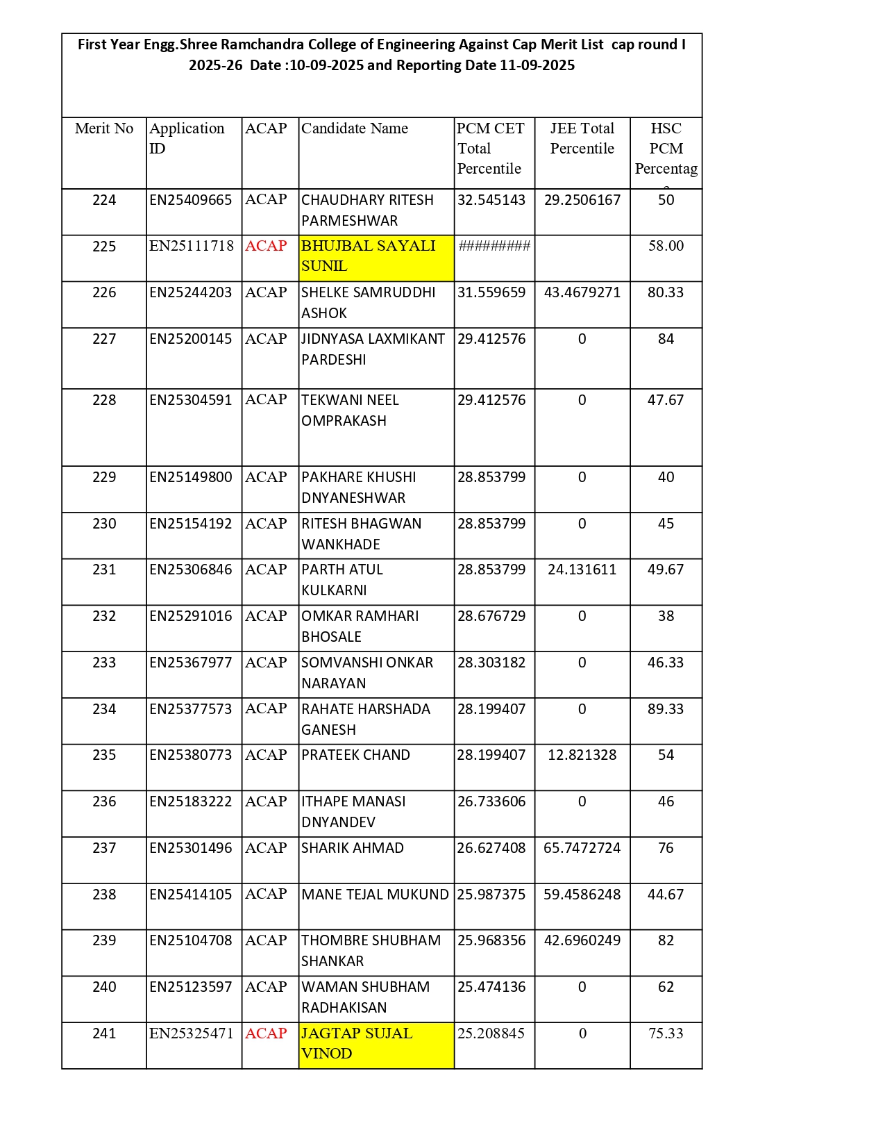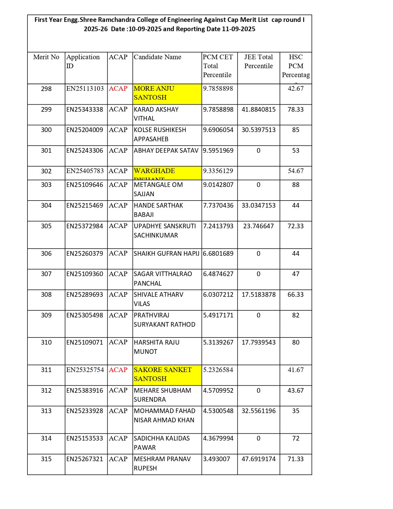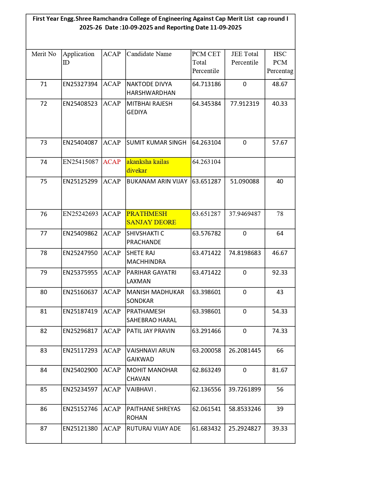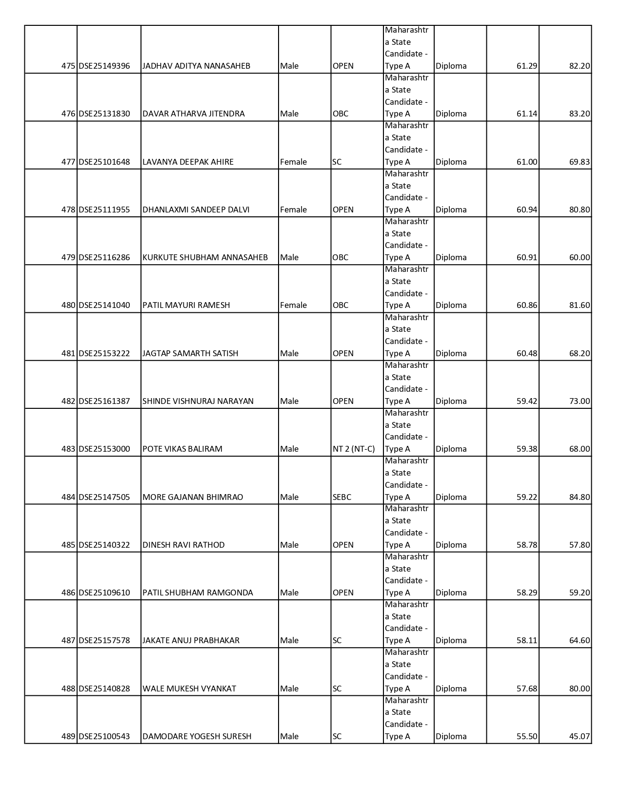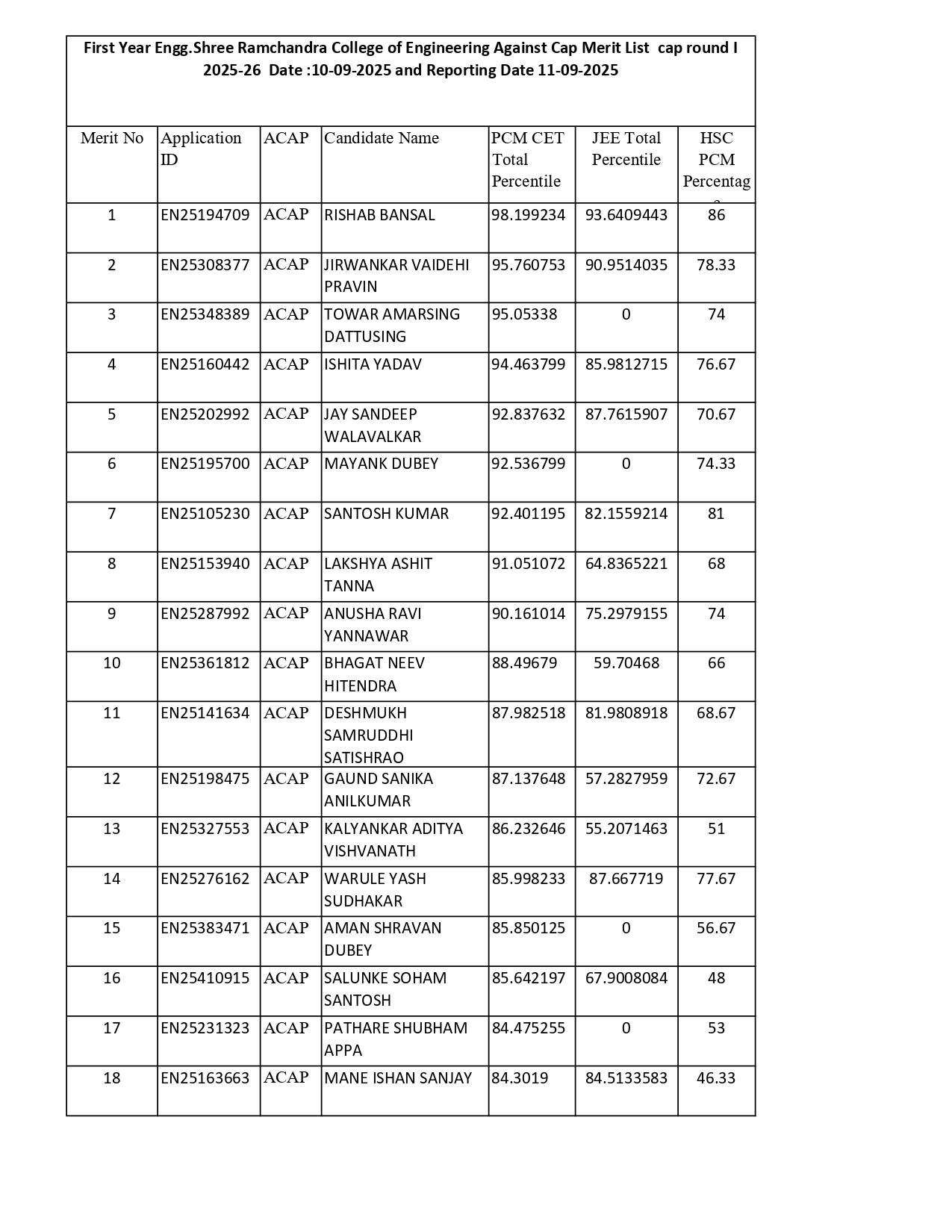 First Year Diploma/Direct Second Year Diploma/First year Engineering/Direct Second Year Engineering and ME